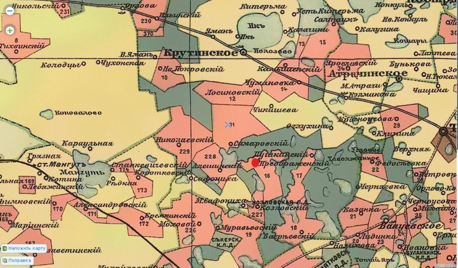 На карте переселенческих участков 1913 года поселок Преображенский расположен на участке № 16.