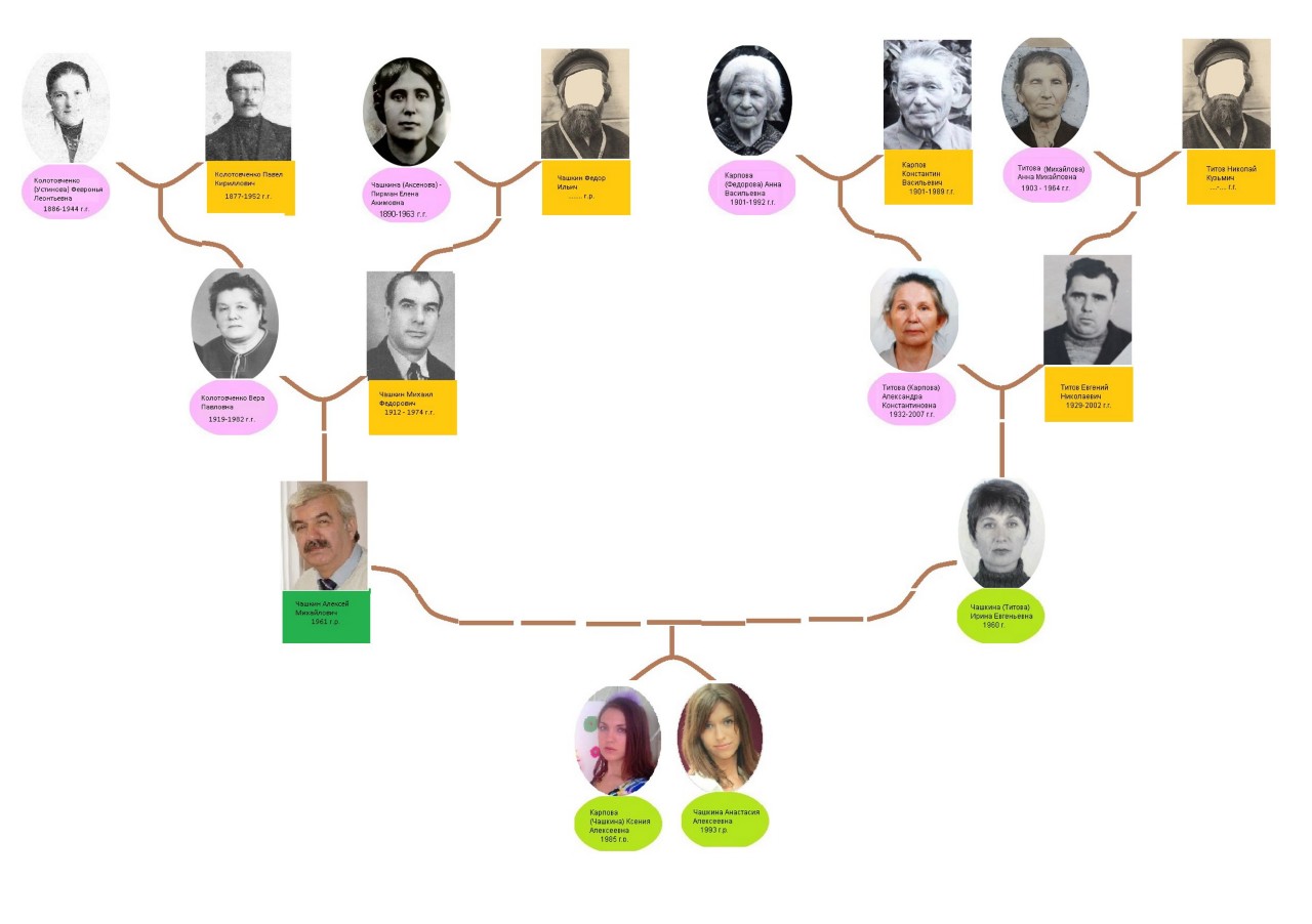 Родословное древо семьи Чашкина Алексея и Чашкиной (Титовой) Ирины