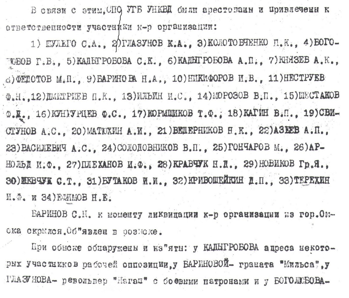Среди арестованных был и Колотовченко Павел Кириллович,который по материалам следствия входил в состав Актива Омской контр-революционной организации "Рабочая оппозиция". Вместе с Колотовченко П.К. в состав актива входили Кормщиков Т.Ф., Кунгурцев Ф.С., Свистунов А.С., Федотов М.П., Кагин В.П., Плеханов И.Ф..